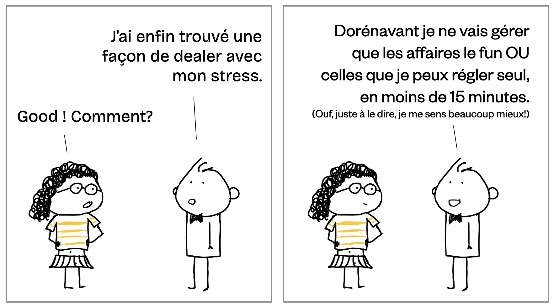 Même si je suis travailleur autonome depuis deux ans, mon corps porte toujours les stigmates de mes jours d’entrepreneuriat, époque où j’avais souvent l’impression de perdre le contrôle, à commencer par la gestion de mon stress. Fou raide, hein?